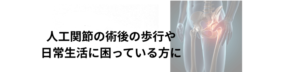 人工股関節・人工膝関節術後の歩きにくさや違和感でお困りの方は、どうぞ一度お気軽にご相談ください。