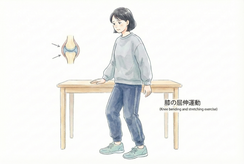 変形性膝関節症や変形性股関節症の方で、膝が伸びにくい・足首まわりが張りやすいといったお悩みがある場合にも、似た考え方が当てはまることがあります。ただし、すべての方に同じエクササイズが合うわけではありませんので、不安がある場合や痛みが強くなる場合は中止し、主治医や専門職にご相談ください。