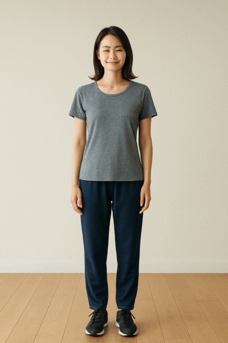 - 足踏みウォーク:背筋を軽く伸ばしてその場で足踏み(1分×3セット)