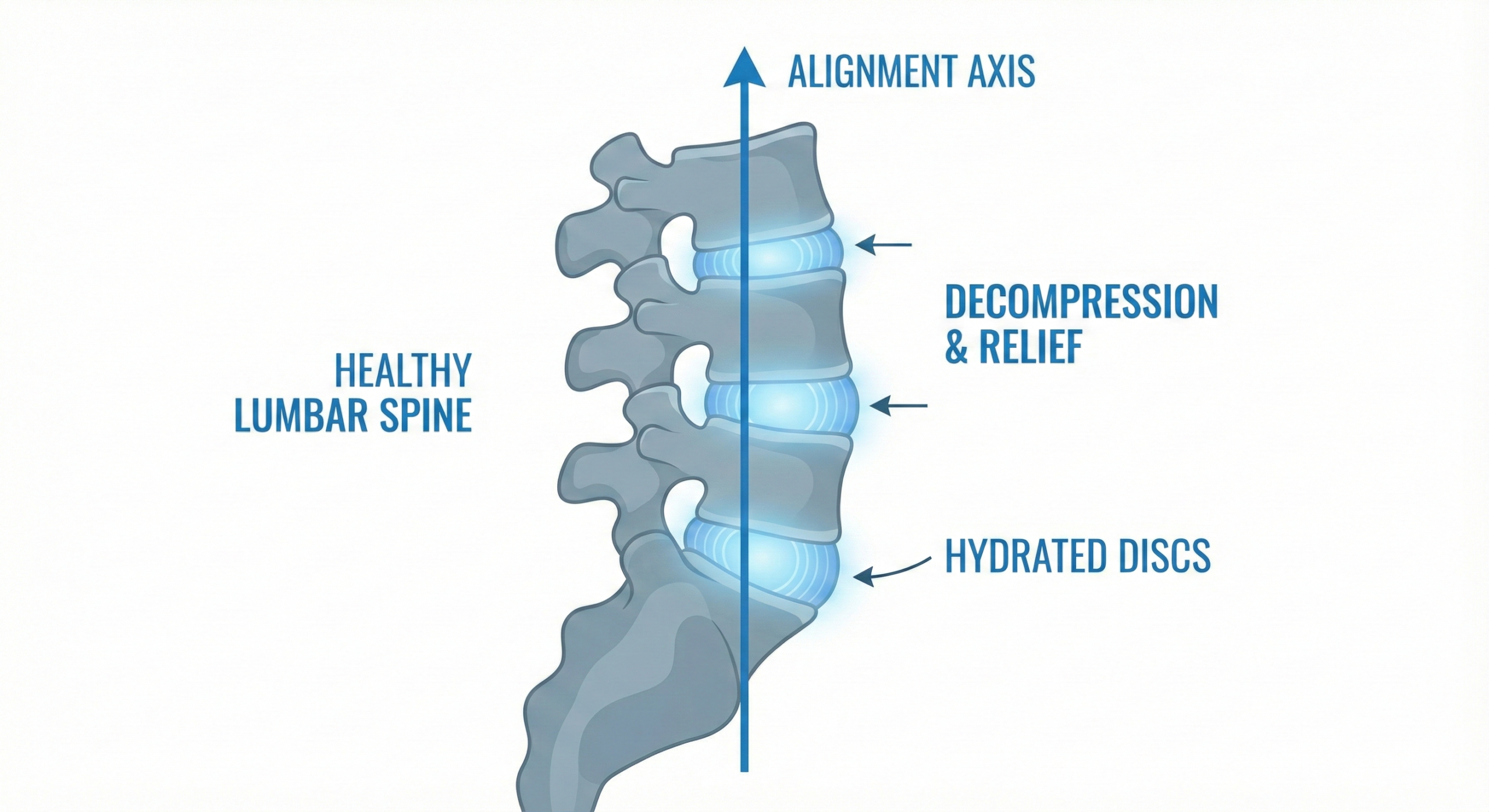 腰椎椎間板ヘルニアでは、背骨のクッション部分(椎間板)の変化により神経へ負担がかかり、