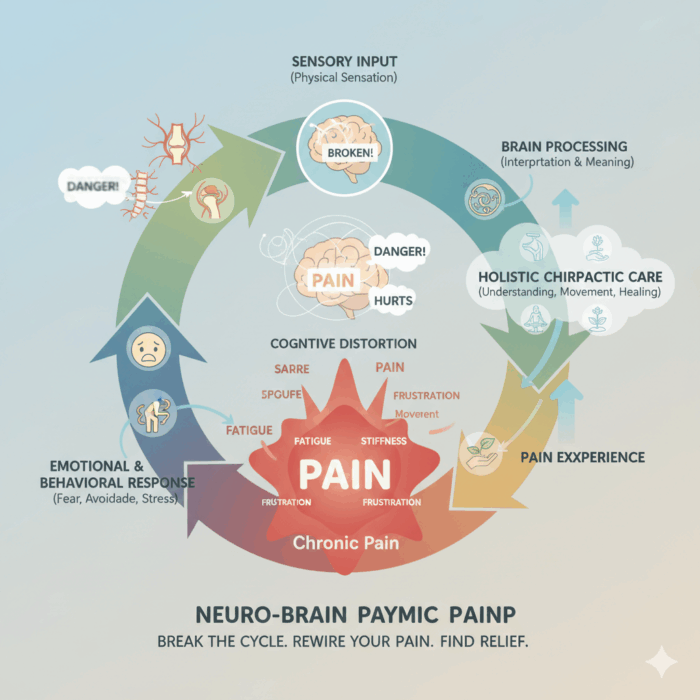 痛みを処理する脳、神経機能が低下を起こし、痛みを伝える神経の通り道まで変わってしまいます。1回の施術では良くならないのはそのためです。慢性的な痛みのある方では気分の浮き沈みでも痛みが強くなったりすることがあります。